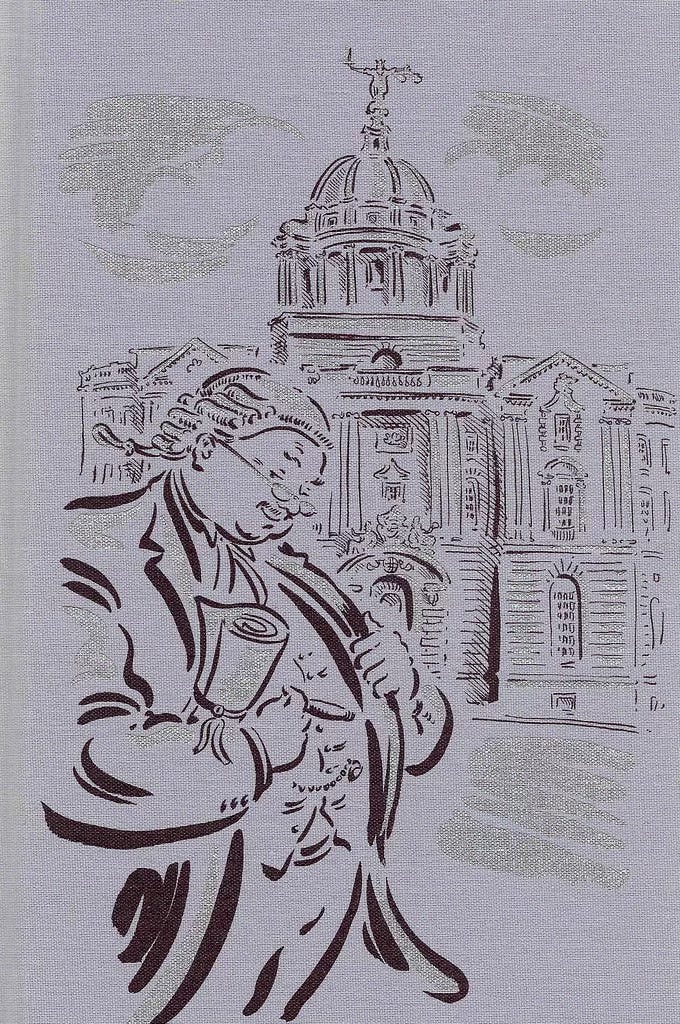 John Mortimer, Rumpole, selected and introduced by the author. Illustrations by Paul Cox. Folio Society, 1994. Printed on Hamilton Wove paper at The Bath Press, Avon. Bound at The Bach Press in full cloth printed and blocked with a design by the artist